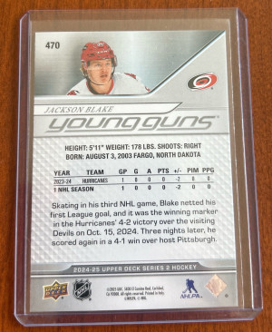 2024 Upper Deck Jackson Blake Clear Cut Young Guns RC PSA 9