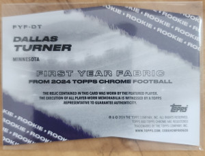2024 Topps Chrome Dallas Turner First Yrar Fabric