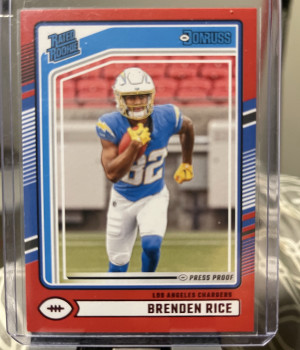 2024 Panini Donruss Rated Rookie Brenden Rice #382 Red Press Proof (RC)