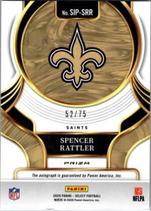 2025 Panini Select #SIP-SRR Spencer Rattler Red Prizm Auto #/75