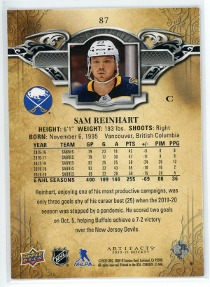 2020-21 Artifacts Blue Sapphire #87 Sam Reinhart /499