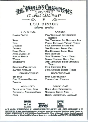 2014 Topps Allen & Ginter #94 Lou Brock
