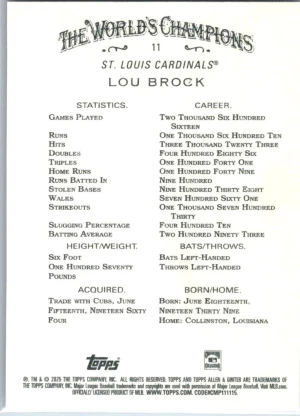 2025 Topps Allen & Ginter #11 Lou Brock