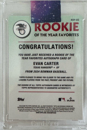 Evan Carter Rookie Of The Year Favorites Auto /99