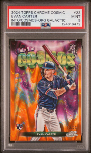 2024 Topps Chrome Cosmic EVAN CARTER Into The Cosmos ROOKIE CARD RC ORANGE REFRACTOR #/25 - PSA 9 Mint