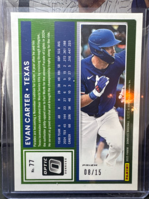 2025 Panini Donruss Baseball Evan Carter Blue Cracked Ice #8/15