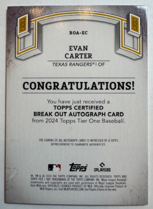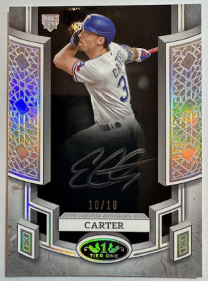 2024 Topps Tier One Evan Carter RC Rookie Silver Ink AUTO #10/10 SSP RANGERS