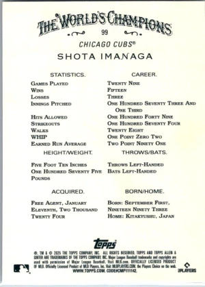 2025 Topps Allen & Ginter #99 Shota Imanaga Chrome