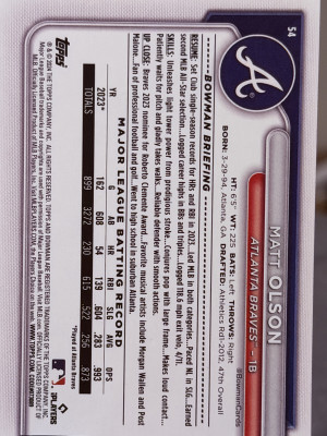 2024 Bowman - Matt Olson #54 Parallel Variation SP