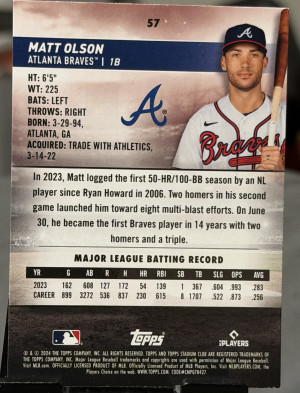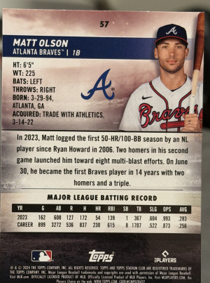 2024 Topps Stadium Club Matt Olson #57 Sepia