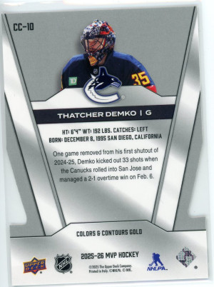 2025-26 Upper Deck MVP Thatcher Demko Colors and Contours /250