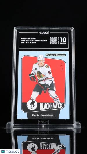 2024-25 Parkhurst Champions Kevin Korchinski #55 Baby Blue Border 22/25 TAG 10