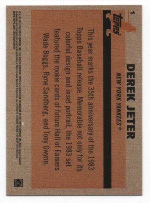 2018 Topps 1983 Topps Design #83-68 Derek Jeter