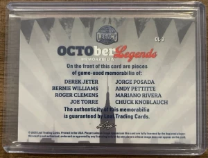 2025 Leaf Bronx Legacy October Legends Jeter, Rivera, Clemens relic Yankees #/6