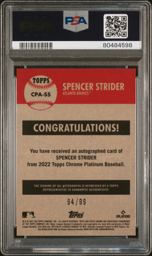 2022 Topps Chrome Platinum Anniversary Spencer Strider SGC 9