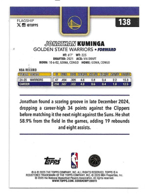 2025-26 Topps #138 Jonathan Kuminga - Golden State Warriors (M294)