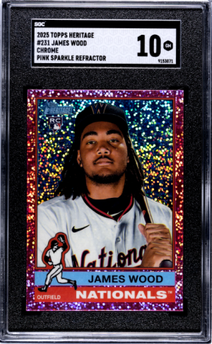 2025 Topps Heritage #231 James Wood Chrome Pink Sparkle Refractor SGC 10