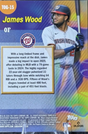 2026 Topps Series 1 JAMES WOOD Rookie RC #TOG-15 Titans Of The Game