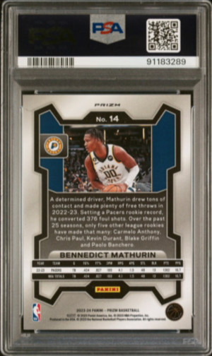 Bennedict Mathurin 2023-24 Panini Prizm Tiger Stripe Prizm Choice PSA 9 Pacers $