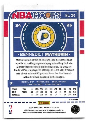 2024-25 Hoops Premium Prizms Winter #56 Bennedict Mathurin - Indiana Pacers