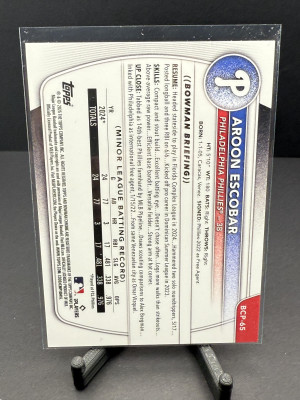 2025 Bowman Chrome AROON ESCOBAR 1st True Yellow Refractor #/75 Phillies BCP-65