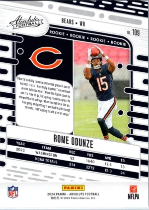 2024 Donruss Rated Rookie Rome Odunze #309 Season Stat Line 163/164 Rookie TAG 9