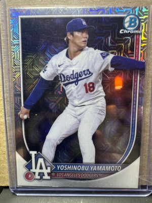 2025 Bowman Chrome- Yoshinobu Yamamoto #18 Chrome Mojo WORLD SERIES MVP!!!