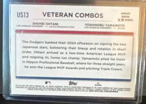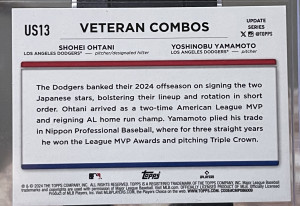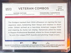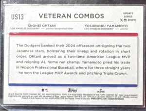 2024 Topps Update Veteran Combos Shohei Ohtani Yoshinobu Yamamoto #US13