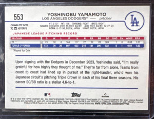 2024 Topps Complete Set Yoshinobu Yamamoto Variation - PSA 9