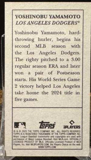 Yoshinobu Yamamoto 2025 Topps T205 Mini