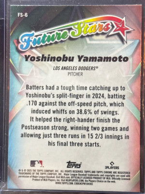 2025 Topps Chrome Yoshinobu Yamamoto Future Stars #FS-6 Dodgers
