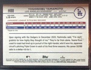 2024 Topps Holiday Yoshinobu Yamamoto RC Silver Glitter #H88 Dodgers