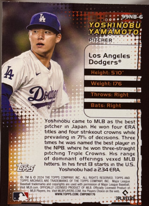 2024 Topps Archives - 1999 New Breed Yoshinobu Yamamoto #99NB-6 (RC) Rainbow Foil