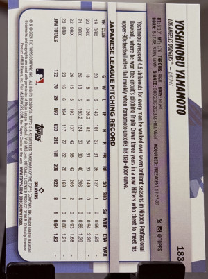 2024 Topps Big League Yoshinobu Yamamoto #183 (RC)