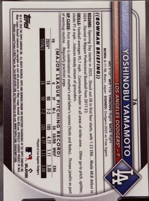 YOSHINOBU YAMAMOTO 2024 Bowman Paper LOS ANGELES DODGERS Rookie Card RC