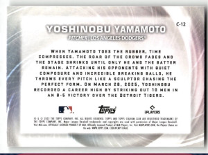 Topps 2025 Stadium ClubYoshinobu Yamamoto Concentration Insert#C12 Dodgers