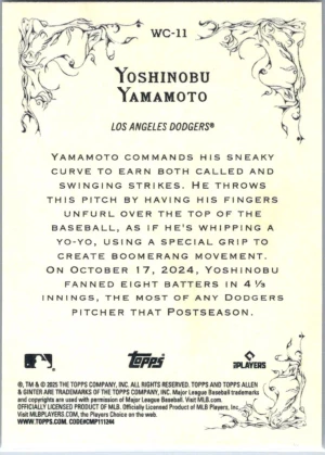2025 Topps Allen & Ginter #WC-11 Yoshinobu Yamamoto Wicked Curves