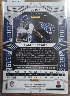 2023 Wild Card Tyjae Spears 5 Card Draw 2/3