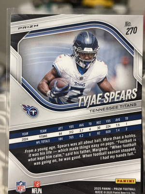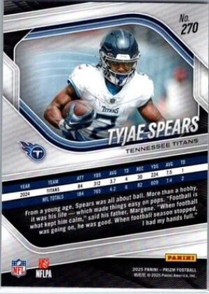 2025 Panini Prizm Football 270 Tyjae Spears Tennessee Titans Silver Holo SP RC