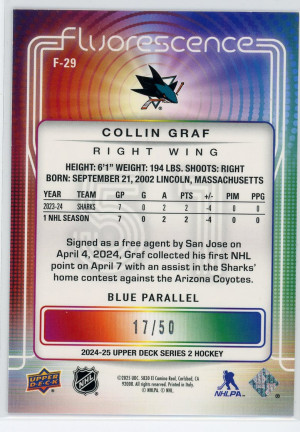 Collin Graf 2024-25 Upper Deck Fluorescence Blue 17/50 #F-29 Collin Graf