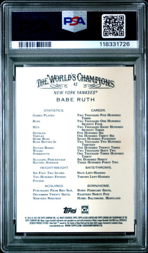 2022 Topps Chrome Platinum Anniversary Babe Ruth SGC 10