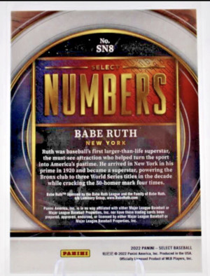 2022 Panini Select #SN8 Babe Ruth Select Numbers