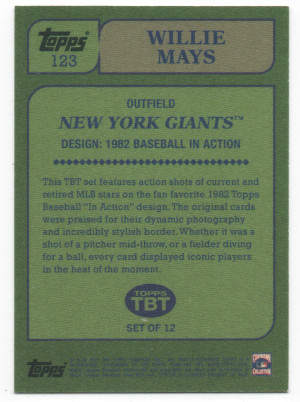 2021 Topps Throwback Thursday 1982 Baseball In Action Design #123 Willie Mays /672