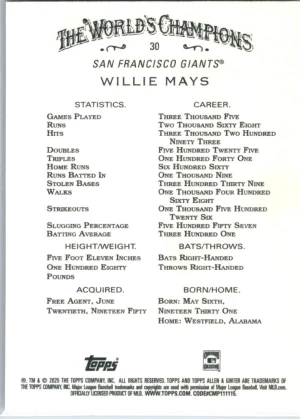 Willie Mays - 2023 Topps Series 1 1988 Topps Real One Heritage Stock Parallel #T88-12 /88
