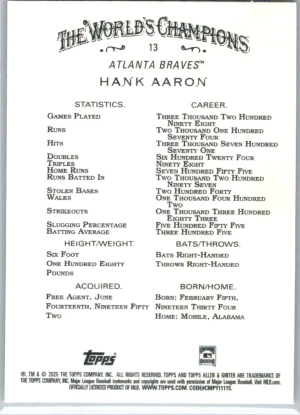 2025 Topps Allen & Ginter #13 Hank Aaron