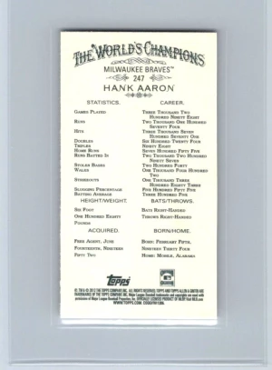2012 Topps Allen & Ginter #247 Hank Aaron Mini