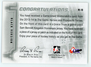 2013-14 ITG Heroes and Prospects Sam Bennett Jersey #M-18