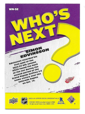 2023-24 Upper Deck Credentials Who's Next #WNSE Simon Edvinsson - Detroit Red Wings