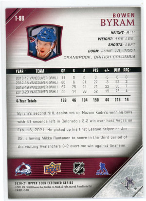 2020-21 Upper Deck Bowen Byram '05-06 Upper Deck Young Guns Tribute #T-98