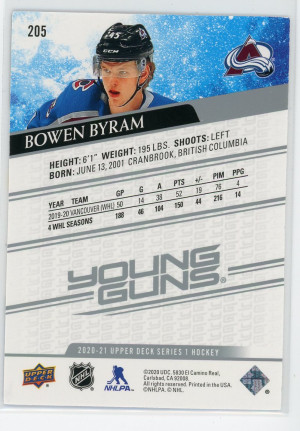 2020-21 Upper Deck #205 Bowen Byram Young Guns
